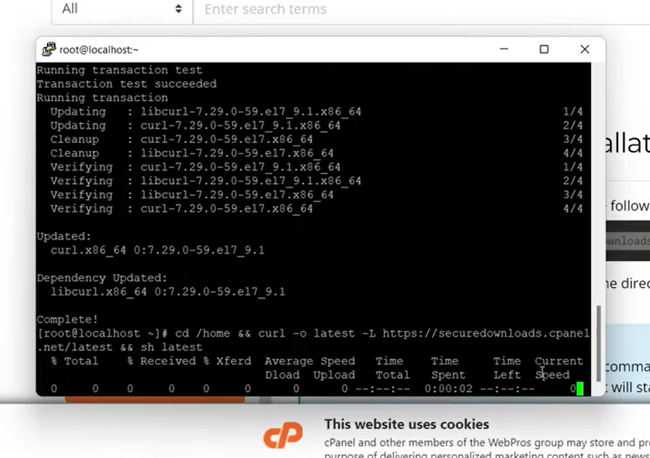 Now comes the main part. Navigate to the home directory. Download the official cPanel installation script: