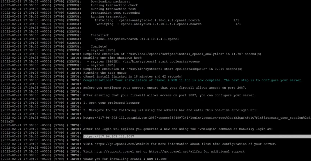 You’ll see a lot of text scrolling on the screen—this is normal. Avoid closing the SSH session during installation.